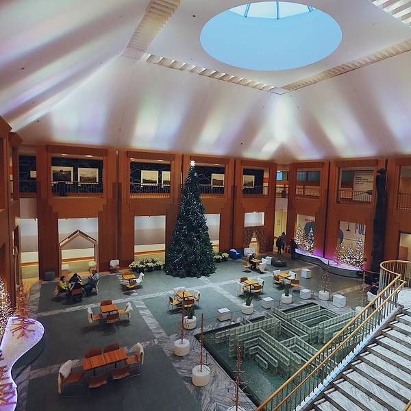 入馆后 可以先把厚重的外套挂在(洗手间)的对门处 馆内比较暖和 这样可以轻松闲逛啦 也可以把包寄存(但是需要硬币开锁哦)一楼有个很大的休闲区