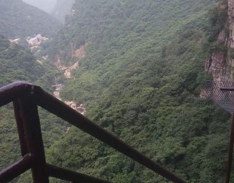 一线天是以前农民走的,不要钱,爬起来有点惊险八里沟景区实际上有两层,山沟是一层,走到尽头可以从台阶上去。有一座电梯,要几十块,也有钢梯,二十块。一线天是以前农民走的,不要钱,爬起来有点惊险
