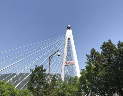坐游轮经过宜昌巴东县,会看到这座桥,而后换游船前往神农溪游览,会穿过它。