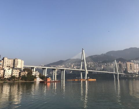 一桥飞架南北蔚为壮观,桥南属神农溪(光屁股纤夫)长江汇入口,官渡口属巫峡西陵峡交界地,一脚踩两峡。桥北沿河有滨江公园,本地人晨练约会之地,看码头,轮船,江景都不错,忆古抒情,既有滚滚长江东逝水之情...