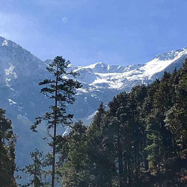 从香格里拉市前往德钦县的梅里雪山途中会经过此垭口,一百多公里的路程,两边风光无限,过了金沙江第一拐不久就能看到白马雪山了,白马雪山地处德钦县,几乎与梅里雪山紧邻,海拔最高处超过4000米,我们自驾车沿着214国道会经过此处,据说五月时的杜鹃花漫山遍野,可惜我们来的季节不对,没看到盛况,只看到超过百年的松树并不少见,白马雪山上融化的雪水源源不断地流下来,滋养着这片土地,使四周的植被茂密,郁郁葱葱,我们的车子在公路上逶迤前行,雪山却不曾远去,一直在我们的车前车后,时而左边,时而右边的呈现,似乎要让我们把白马雪山打量个够,正值晌午,阳光直射雪山,在阳光下发出刺眼的光芒,难睁开双眼,也许是刚下过一场雪,积雪有层次地覆盖在山坡上。 白马雪山的海拔超过4千,由于植被丰富,氧气充足,并未感到有什么不适,全程柏油路,比较新,一路上路况极好,但是弯道很多,提醒驾驶时要谨慎,好在车子还不多,路旁能见到“白马雪山观景台”的路标,似乎时主路旁的一条坡道,我们没有下去,而是选择在中途的休息站停靠,在此观赏白马雪山视野极好,很多自驾车在这里休息拍照,但是没有食物和水等提供,因此出发前建议带些食物饮料等在车上备用。或者也可继续向前开,到德钦县城休息、吃饭,也在路旁。