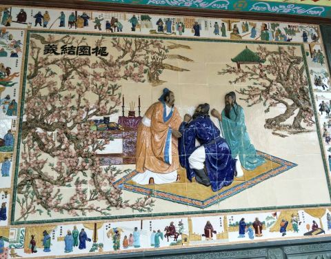 宝墨园里面的一处景致。感觉整个园子叫做宝墨园就是因为这个建筑吧。前面的水池比较干净,有很多锦鲤,感觉很不错。3月份的时候,到处都是桃花。