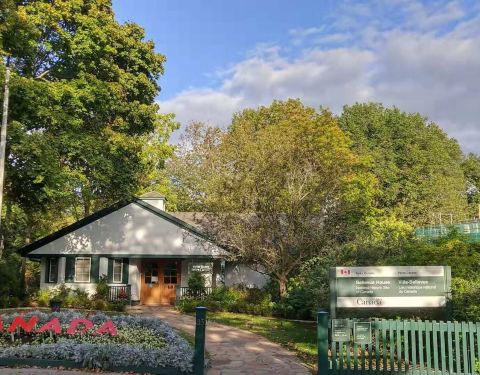 开车从多伦多过去,时间稍微晚了点,景点已经关门了。 景点有个游客中心,在马路对面可以停车。现在正在装修,外观也不是很清晰。院子里成熟的苹果树倒是最引人注目。