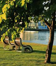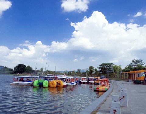 湖里有游乐的船可以租,公园内有一个草皮铺砌的建筑,爬上去可以俯瞰公园,此外有座庙,那边的园林景色不错