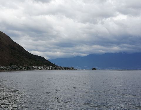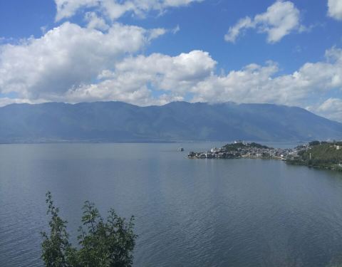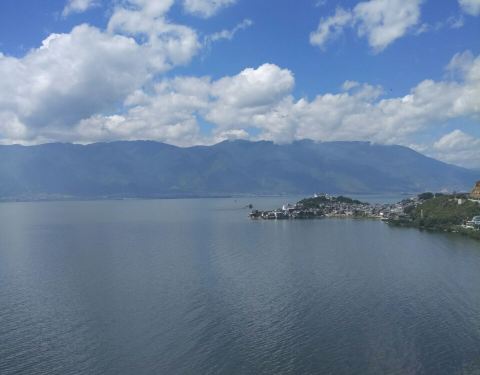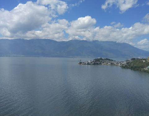 可以坐大船游览洱海。很漂亮。来大理的游客大部分是冲着洱海来的。旁边又有码头