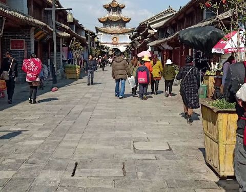 不收门票,适合散步,街边有米线等小吃。