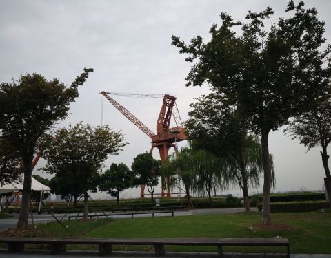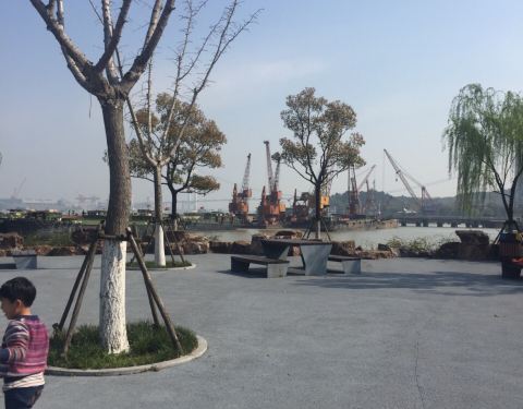 ...,就在长江边上的,船厂公园面积是很大的,也有很多老厂房可以看,绿化很好而且又临着长江,景色不错