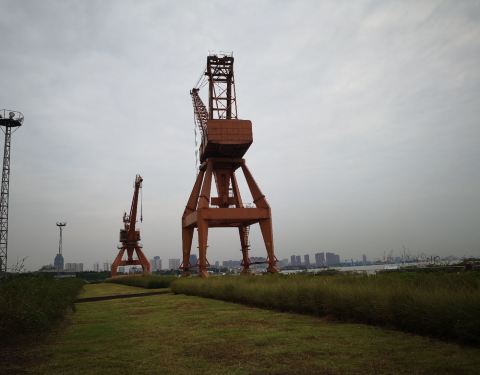 船厂公园是在老船厂建造起来的,就在长江边上的,船厂公园面积是很大的,也有很多老厂房可以看,绿化很好而且又临着长江,景色不错