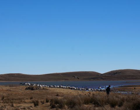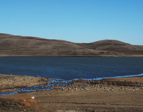 同会泽的黑颈鹤保护区一样,这里也是黑颈鹤冬季的栖息地。不过这里有专门的观测点,观测“地道”,从瞭望口可以近距离的观看到黑颈鹤,以及黑颈鹤进食,饮水,打闹,恩爱和起飞降落!所以这里的鸟类较为单一。这里海拔高,这里有山顶湖,也是很新奇的,冬季的大山包与夏季的草原花海不同,在鹤的陪衬下别有一番特色。值得一去,这里同鸡公山属于一个景区,那边的云海也很美!