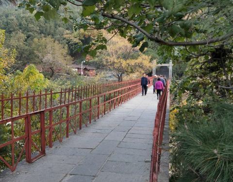 泰山上的大众桥之前一个很普通的桥啊,来这里玩的时候都会路过这里,一个红色的桥感觉还是很漂亮的呢,走过去一定会带来好运的吧。