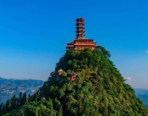 七绝。丹霞山护国寺》古寺丹山观日楼,玉佛香火护盘州。丹霞林海佛光炫,日月同辉霞客游。霞客是指徐霞客。好好好,很美丽值得一去