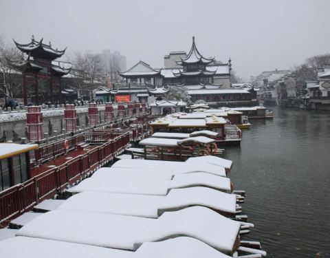 ...里,得月台一旁就是坐船游秦淮河的码头,另一旁是参观夫子庙,不过,周边风景不错,好多人在这边拍照