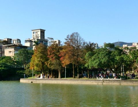 比较条例带小朋友一起过来的,可以在湖光泛舟的,挺少错的一个公园的,台北的公园既多又漂亮而且都不算小的