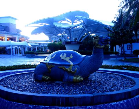 东屿岛是博鳌的一个小岛,岛上有亚洲论坛永久会址以及配套设施。我们是傍晚时分进入的,永久会址没能进入参观,只能在岛屿上转转。沿着环岛路漫步,看看狭长的沙坝——玉带滩,鳌石广场上的鳌石灵像和祈运台,亚洲风情广场......