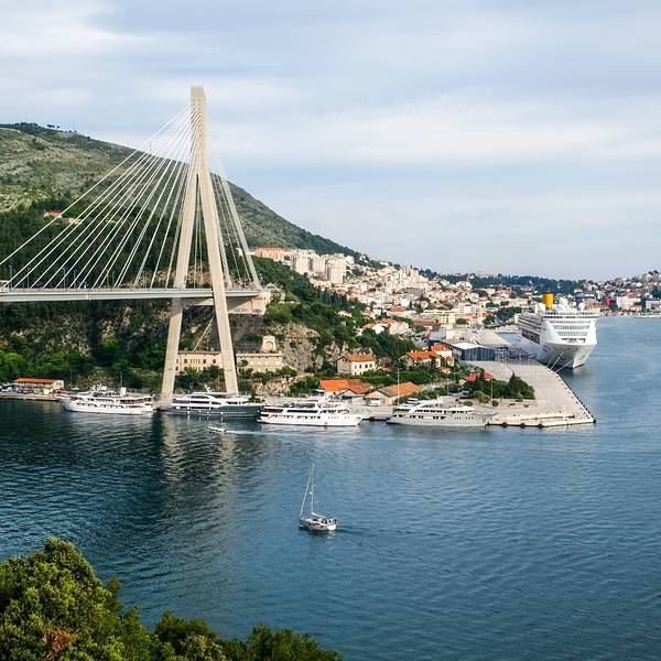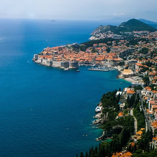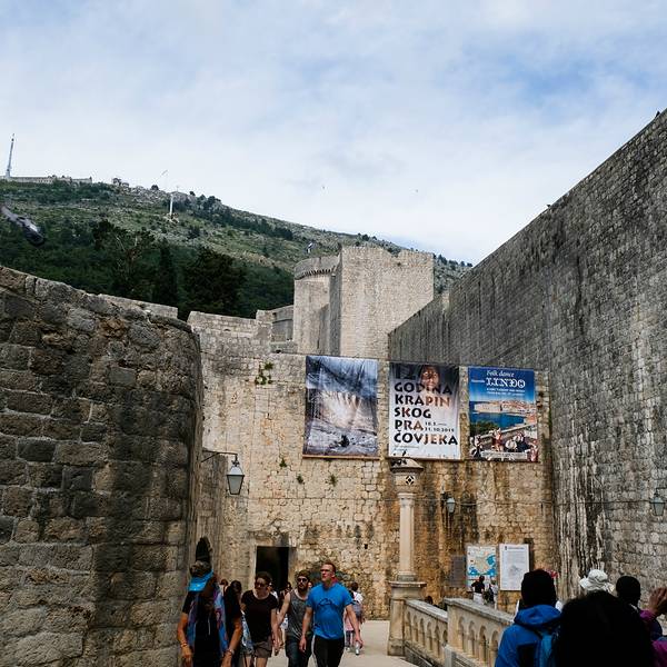 当即将抵达杜布罗夫尼克时,从悬在半山腰的公路上就能看到位于海边的老城全貌,貌似公路旁还有一个面积不大的观景台,如果是自驾,也可以停车拍照。整座古城完整的保留了中世纪的风貌,在1979年被收入了世界文化...