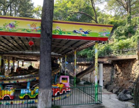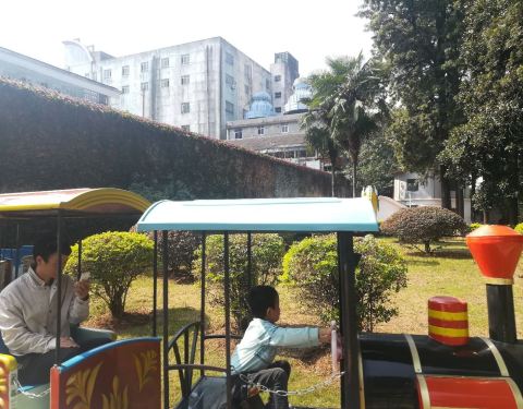 儿童公园在健康路,开发式的游乐公园,园内参天大树林立,树下常有老人们跳舞健身,周边散落着儿童游乐设施,小孩们玩得很雀跃,一座小山上,却有身着道衣样式的老人在练太极,颇有仙风韵味。公园老旧,不失活力,或需改造维护下更佳。
