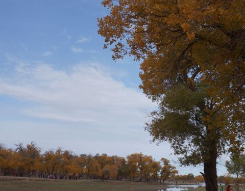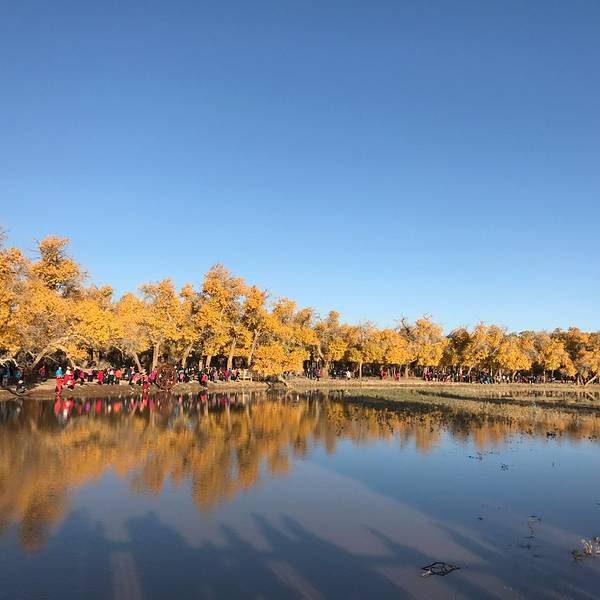 据说在这里可以看日落,于是我们就决定抓紧时间去其他景点,日落的时候再来这里拍照从一道桥步行到二道桥,一道桥的胡杨林较为矮小和杂乱,不用停留太多的时间。由于这里没有环保车乘坐,必须要步行到二道桥。随着天亮,游客也越来越多。 二道桥——倒影林,这里有宽阔的河水,适合拍摄水中倒影...从一道桥步行到二道桥,一道桥的胡杨林较为矮小和杂乱,不用停留太多的时间。由于这里没有环保车乘坐,必须要步行到二道桥。随着天亮,游客也越来越多。 二道桥——倒影林,这里有宽阔的河水,适合拍摄水中倒影的胡杨林。今天的天气属于阴天,太阳伯伯不给力,中午时段只露面了几分钟。这里的游客最多,想找个地方拍美美的照片比较难。据说在这里可以看日落,于是我们就决定抓紧时间去其他景点,日落的时候再来这里拍照。 展开