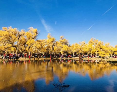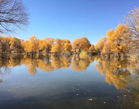 是欣赏胡杨林美景的绝佳地点,去年国庆去的,位于内蒙古阿拉善,来到这里就仿佛置身金色童话世界,大...是欣赏胡杨林美景的绝佳地点,去年国庆去的,位于内蒙古阿拉善,来到这里就仿佛置身金色童话世界,大量的胡杨林,静静的湖泊,湖泊中的胡杨林倒影,组成了绝美的画面!