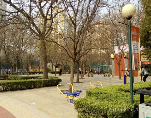 社区公园,免费。园内有塑胶跑道,免费的锻炼器材也比较多,中老年人跳舞的比较多,环境一般,比较嘈杂