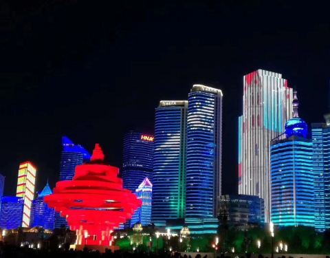 上合峰会闭幕已有数十日之久了,闭幕后的灯光效应继续燃起,照射着整个浮山湾畔,每当夜幕降临灯光燃起后浮山湾畔五彩缤纷绚丽多彩,峰会会议中心在彩灯的照射下格外靓丽。