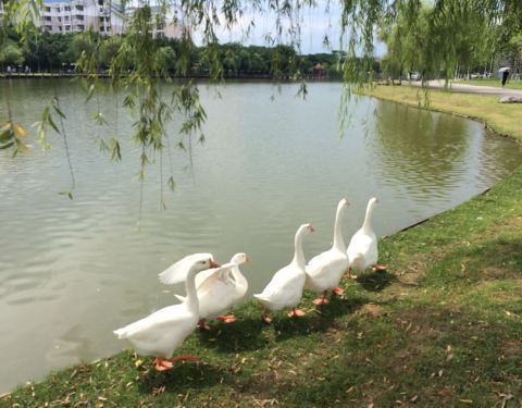 免费公园,这里有黑白天鹅鸽子孔雀,这里有山有水有百草园