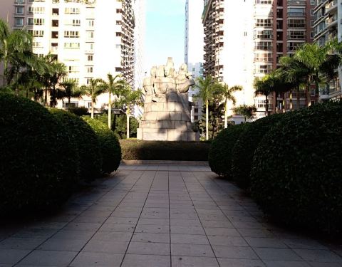 温泉公园对面,可能是我见过的最小的一个市级广场了,被建筑物包围着很不起眼,中心有个石雕,倒是闹中取静