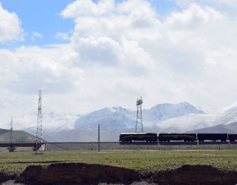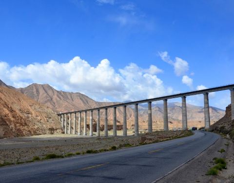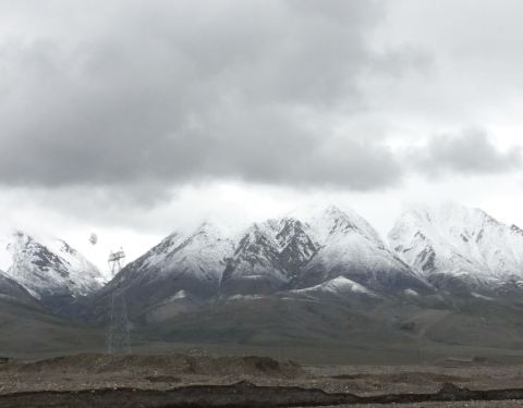 而玉珠峰,永远是那么圣洁美丽!三岔河大桥伟岸挺拔,青藏铁路在雪峰下蜿蜒;巍巍昆仑终年积雪,雄伟壮观