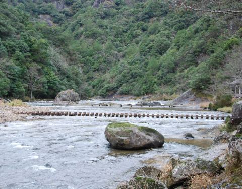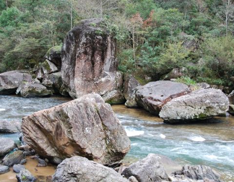 福建宁德屏南的国家地质公园就在双溪镇的白水洋风景区内,在浅水大广场的前后河道上均可以欣赏到以前火山运动后留下的地质地貌特征,趣味性比较强