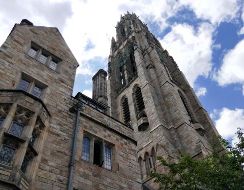 哈克尼斯塔是在耶鲁大学的老校区域里面的,一座很高的建筑物,只能够在外面看,因为是走不进去的,每...