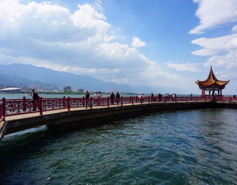 海心亭在洱海的最南边,绵长的洱海在这儿一望无际,阳光照耀下的洱海在蓝天白云映衬下泛着碧绿的光芒,令人心旷神怡,是周末休闲的好地方。