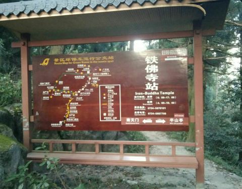在祝高岭。又名铁佛庵,始建年代不详,以寺内置有一尊万斤铁佛而得名。铁佛寺前面的香火台,是一处很好的观景平台。这也有石椅给旅客休息。