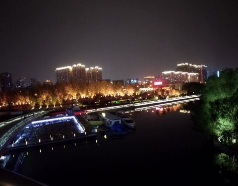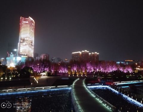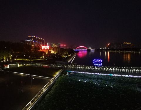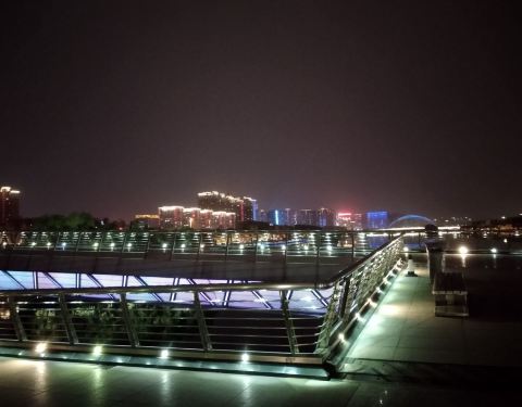跻汾桥夜景 美的都舍不得离开了。跻汾桥之前没有来过,之前不识庐山真面目,想不到夜景如此美丽