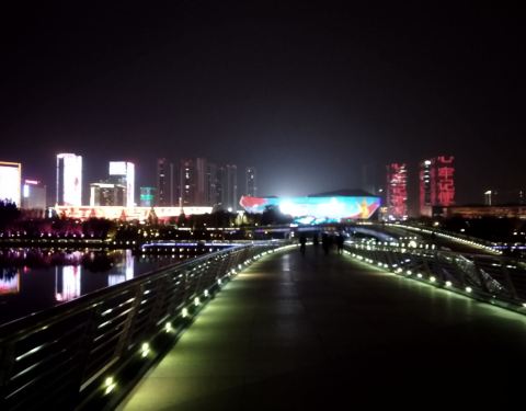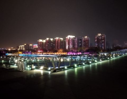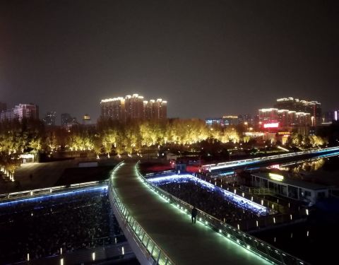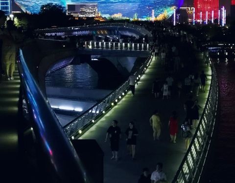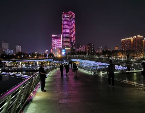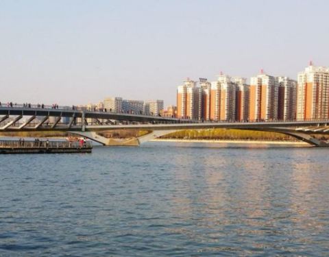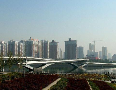 跻汾桥是太原市里汾河上最漂亮的一座桥,也是唯一一座横跨汾河的步行桥