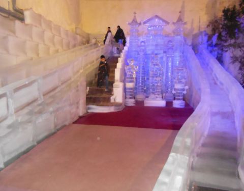...冰雕展,比较有趣的是里面的滑道,好多人都要玩个两次,从上面冲下来倒是很爽的,嗖嗖嗖的,又冷又快
