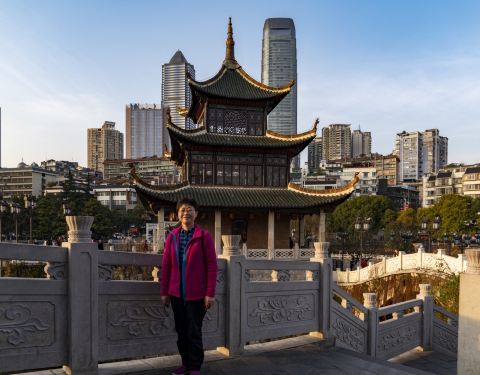 甲秀广场不大,后面就是甲秀楼和翠微园,有一个很漂亮的牌坊,雕刻很精美,旁边有花园,春天的时候,樱花盛开,有点在日本的风情。