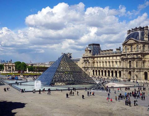 金字塔广场就是罗浮宫前面的白色玻璃金字塔的广场的,这是出自华人世界级的设计贝律铭之手的,也是一...