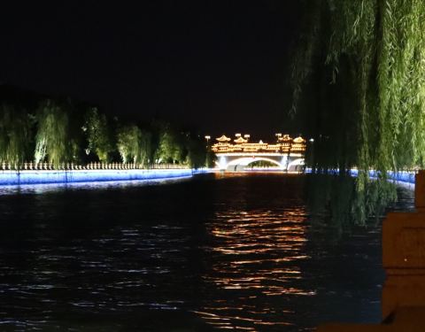 但是现在却多了一份宁静,在两岸的杨柳飘飘之下,看着偶尔的几艘小船经过,觉得这个城市现在还真的是...