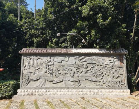 里面有个小动物园,也没啥可看的。门口立着西双版纳解放纪念碑一个破败的园子,没有什么民族风情,没有音乐舞蹈表演,没什么可赏可玩的。里面有个小动物园,也没啥可看的。门口立着西双版纳解放纪念碑。