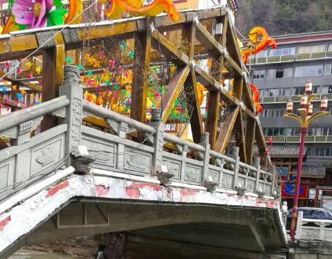 康定市(县级)是甘孜藏族自治州首府,市中心的“康定情歌广场”突出体现了这座城市浓郁的“康定情歌”氛围。道路拐入口立有花岗岩石刻书的雕塑,“书”上就是“康定情歌”的谱曲。广场是开放的,各色彩挂与灯饰装点得满满当当。靠中间的一侧布置了巨幕搭配音响,是每晚“歌舞群艺会”的重要伴奏设备。环顾四周,酒店、影院、商城、小桥,无一不是以“康定情歌”命名,让人完全沉浸于“跑马溜溜”的歌声之中,感觉真是有趣极了!