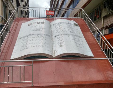 情歌广场位于康定老城区,周围非常热闹,名字来源于“康定情歌”歌词中的“康定溜溜的城”。它一边近靠折多河,一边有吃喝很全的街,是当地居民生活休闲的地方。广场前面坚立着康定情歌的歌谱,很有特色,表明了...