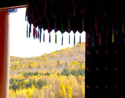 在去美林谷的路上,新修复的,附近景色不错,干净清爽,师傅在讲道,古老的藏式建筑。