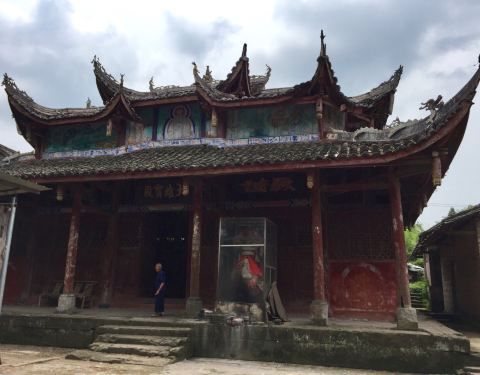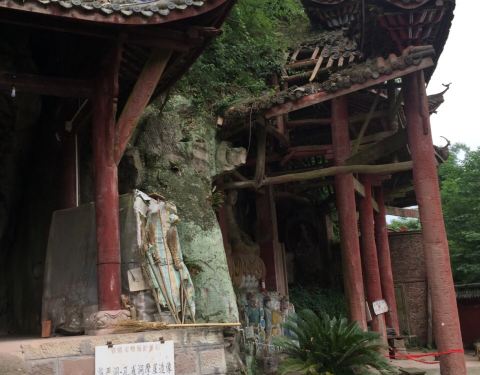 安岳县石羊镇往大足方向开20公里有个孔雀洞,不过导航上没孔雀洞具体位置坐标的,可以先导航到双龙街乡再问当地村民,里面有尊孔雀明王造像,孔雀洞院子的边上有条通向山顶小道,上面有个看似古老的寺庙,只有一...