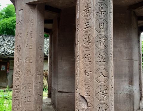 安岳县石羊镇往大足方向开20公里有个孔雀洞,不过导航上没孔雀洞具体位置坐标的,可以先导航到双龙街乡再问当地村民,里面有尊孔雀明王造像,孔雀洞院子的边上有条通向山顶小道,上面有个看似古老的寺庙,只有一个老头看门,庙里有座晚唐的经目石塔,保存相当完整,上面书法也非常漂亮,值得一看!