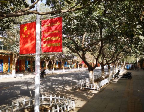 ...库车大寺,1.8公里,颜色就有特色,街道很干净,正好学生放学,为本来安静的街道增加了很多的生气