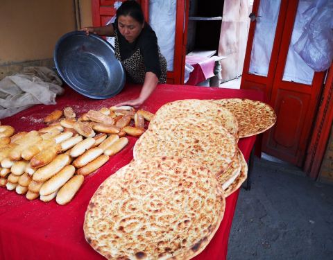 还有著名的库车大馕,才3块~古城很多门都非常漂亮,少数民族风情很浓重,很多食品、手工艺、牛羊店分布在老城中,浓浓的生活感,白天可以大胆放心往前走,各个支路都会有检查口,汉人一般不查。还有著名的库车大馕,才3块~