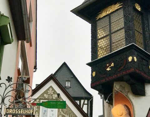 吕德斯海姆成为德国旅游十大必到景点之一,悠闲的小镇生活就像第一缕阳光照射前那露珠覆盖下的冰葡萄一样纯粹而洁净。其更大的原因是:这里是白葡萄酒之王——“雷司令”的主要产地,世界上地道的旅游者不会轻易错过这样的机会,因此小镇上六、七成都是酒吧和酒店。