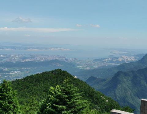 在庐山含鄱口去缆车岔路的边上,上去之后可以看到视野更开阔的风景,不过稍微要爬一些台阶。遇到天气透明度好,可以看到鄱阳湖长江的交汇处。