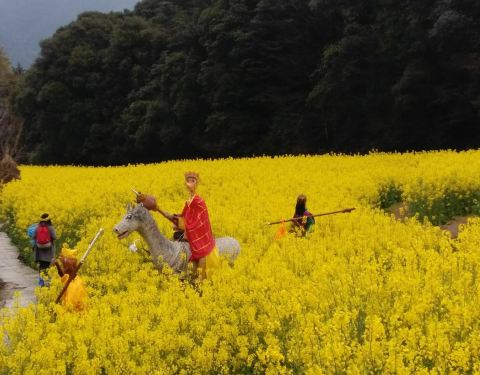 ...像西游记里面的人物,有的像干着农活,这种栩栩如生的人物和油菜花形成了春天最美的一道亮丽的风景线