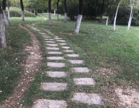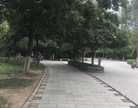 ...着两边的高楼,行走在健身路径上,不时会看到雕像小景,虽然是人工设计的景观,却也让人感觉心旷神怡