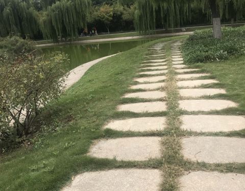 杨柳岸晓风残月的感觉有一点了,但是还是缺少更多的绿地面积和休息的地方,中午正好不热,倒也是安静,可以坐在草地里休息一下。